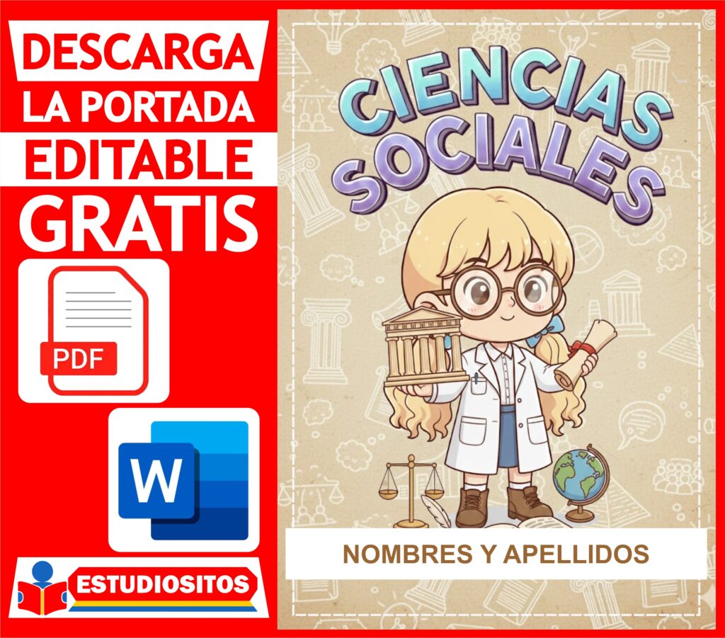 Haga click en el siguiente botón para poder descargar la portada de ciencias sociales para niñas totalmente editable en formato PDF: